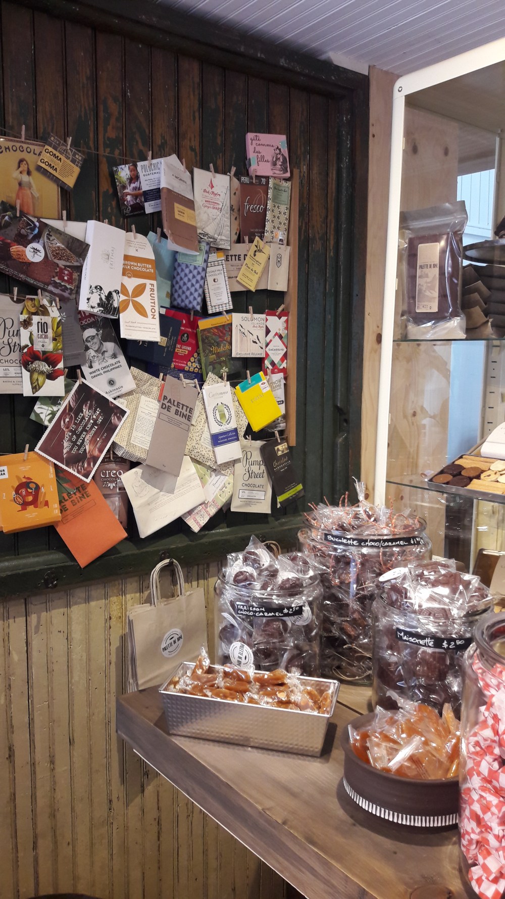 It isn’t only a story of a great specialty chocolate; it is also a story of resilience. Christine Blais is an architect. She started selling her chocolate under the name Palette de bine (=bar of beans) in 2014. When her shop burnt to ashes last year, she started anew directly. Her new shop and workshop are the result of this amazing willpower. Dont hesitate to visit her!