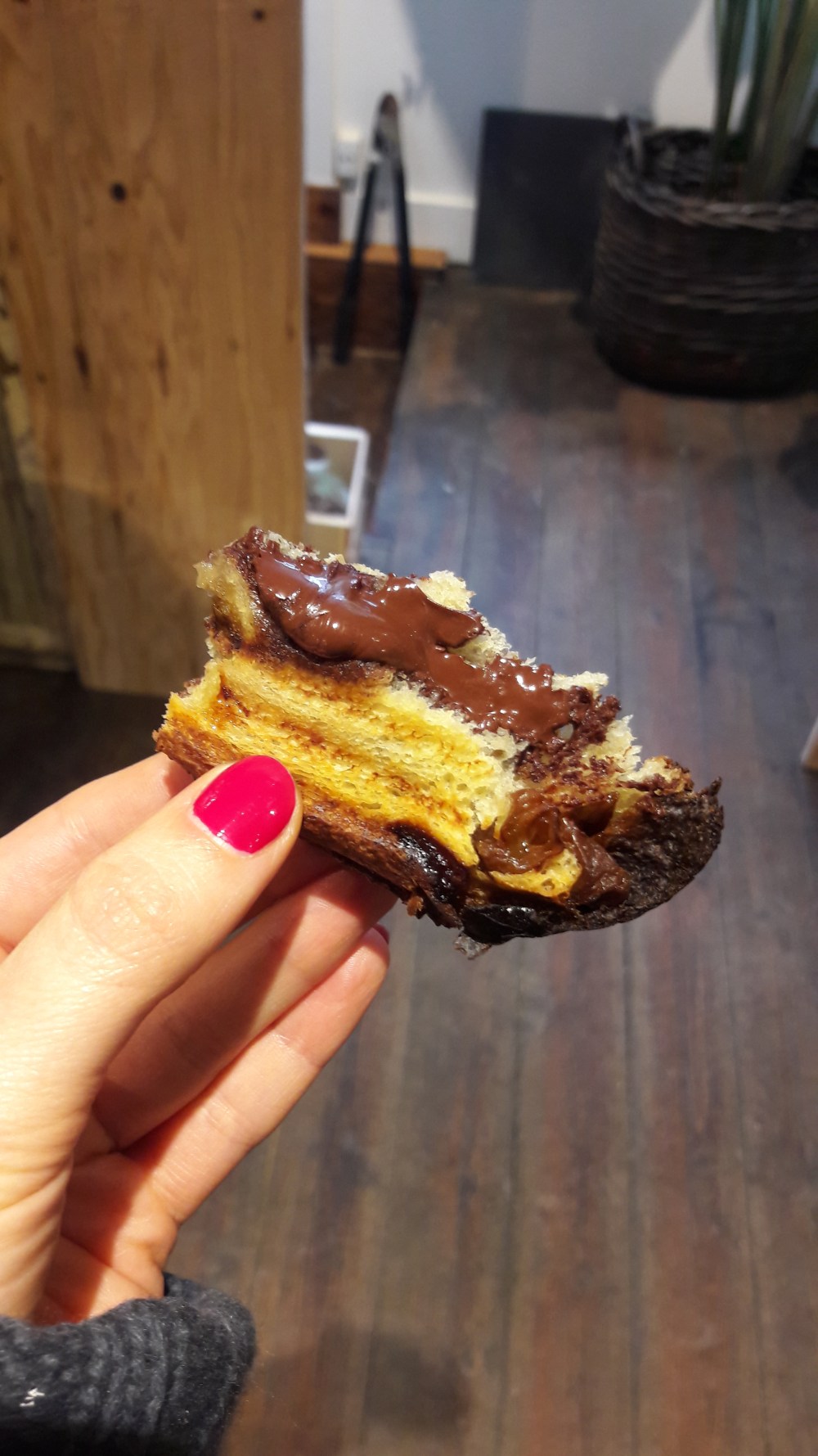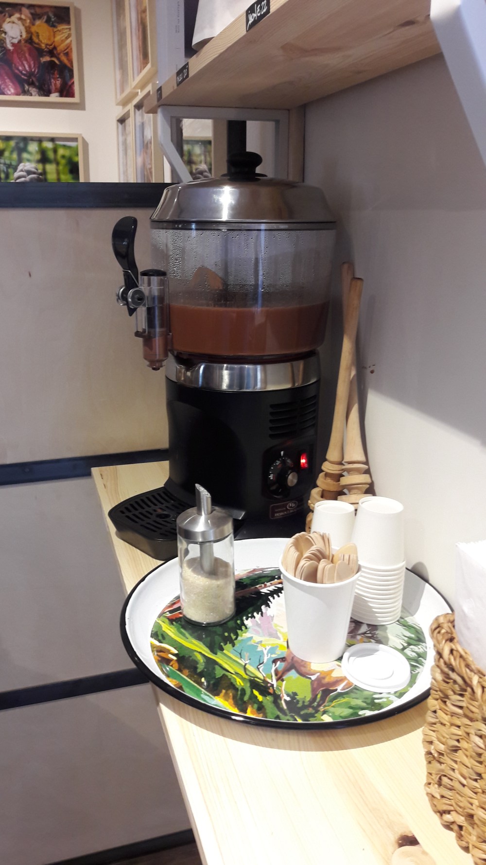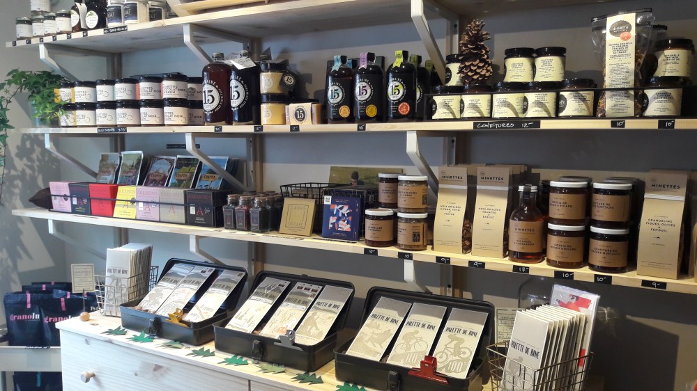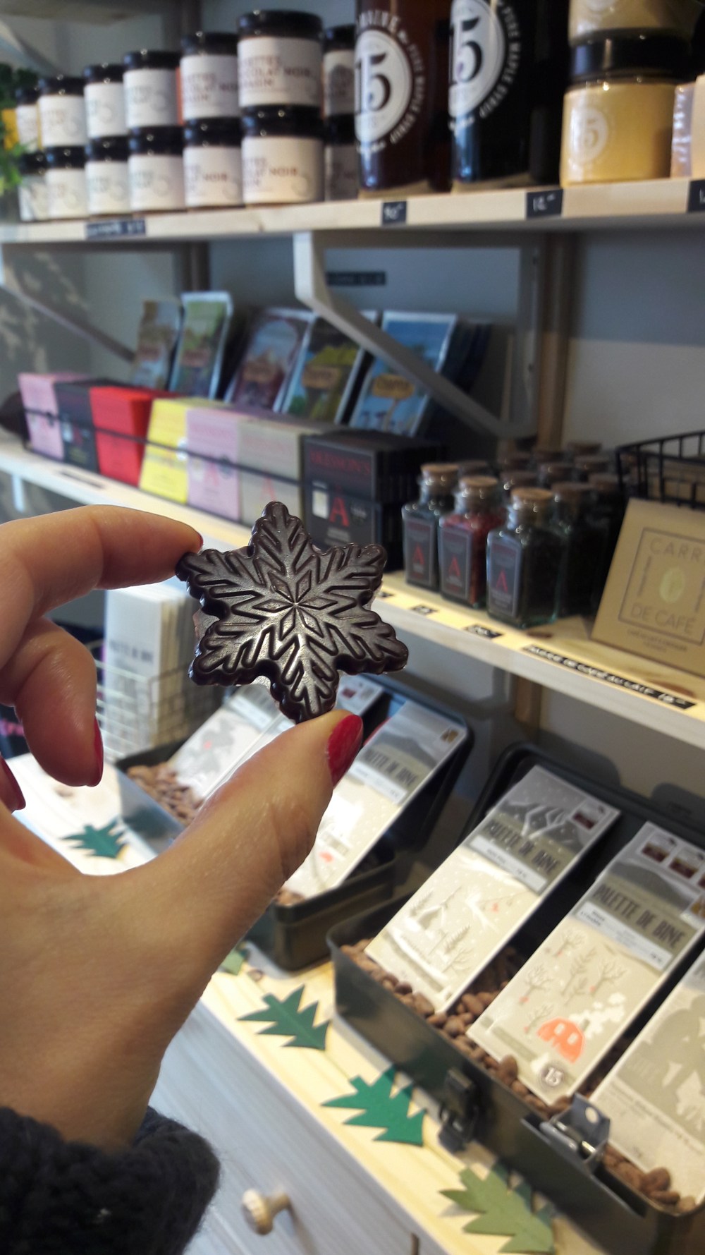 J’ai eu le plaisir de visiter Christine dans son chalet. C’est un magasin magique, rempli de tablettes mais aussi de miel, caramels de toutes sortes, et autres tartes. Hébergé dans un chalet, avec sa lumière tamisée, on le dirait sorti d’un conte de fées. Comme vous le voyez sur les photos, elle prépare aussi des paninis au chocolat: pain aux raisins et cannelle fourré de chocolat. Vous m’en direz des nouvelles! Son chocolat chaud fait maison est également à disposition, attendant sagement que vous y passiez…